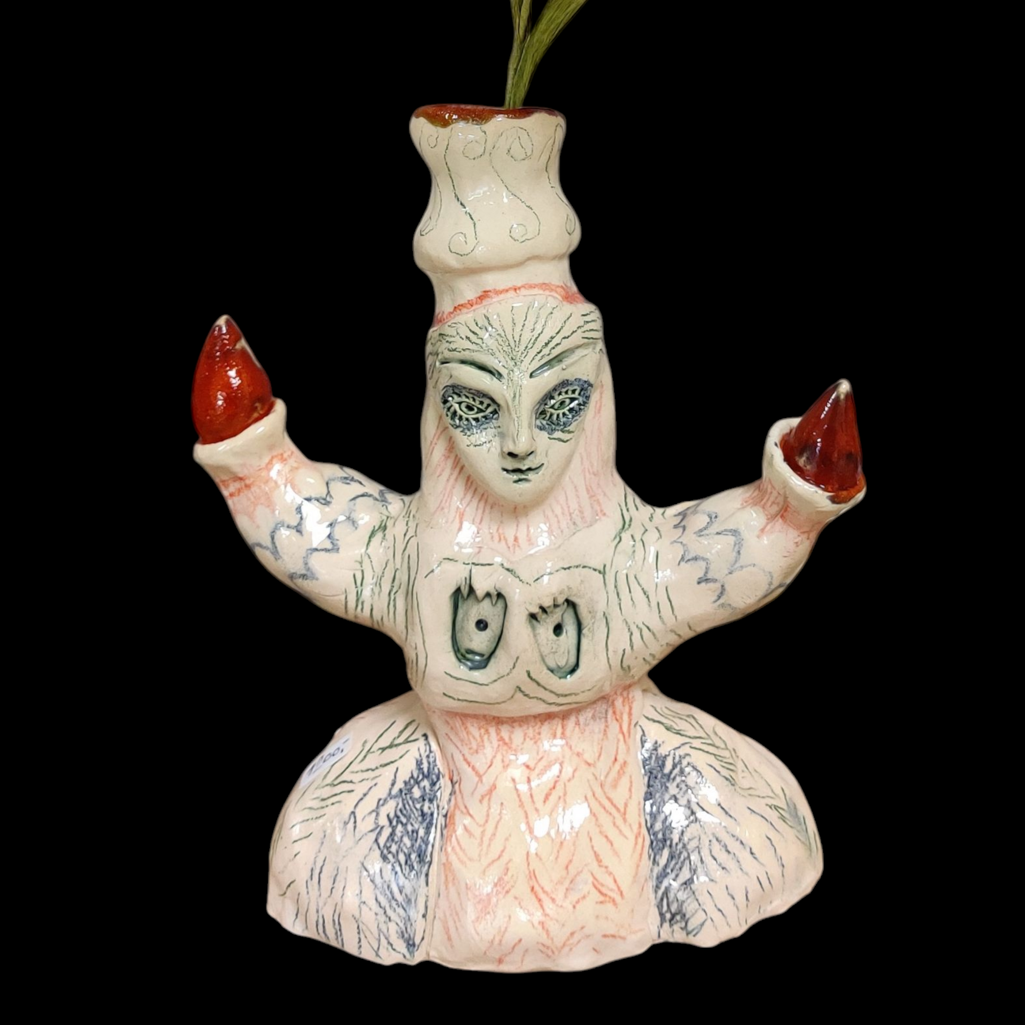 En skulptur i lertøj. Den måler ca. 16x21 cm.