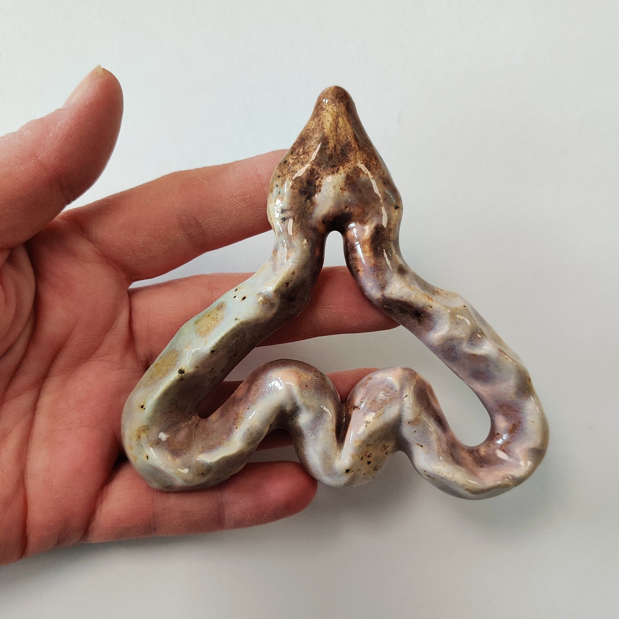 Fra serien Strange Fruits. Den er i lertøj og måler ca. 9,5 x 10 cm.